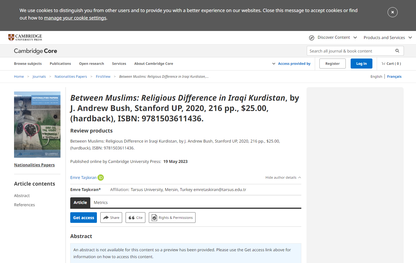 https://www.cambridge.org/core/journals/nationalities-papers/article/abs/between-muslims-religious-difference-in-iraqi-kurdistan-by-j-andrew-bush-stanford-up-2020-216-pp-2500-hardback-isbn-9781503611436/652B56E509F74000C7D9EA4E0F14779E?utm_campaign=shareaholic&utm_medium=copy_link&utm_source=bookmark